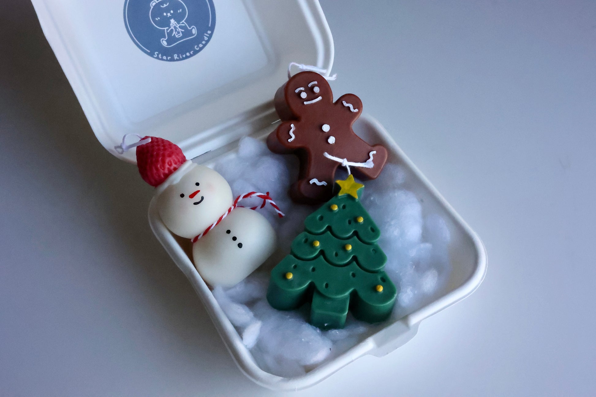 Christmas Tree, Gingerbread Man & Snowman Candles | Holiday Home Decor | Festive Gift Set | Seasonal Celebrations
